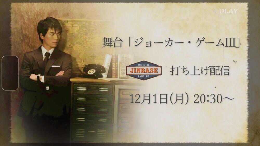 【12/1(月)20:30〜】舞台『ジョーカー・ゲームⅢ』JINBASE 打ち上げ配信